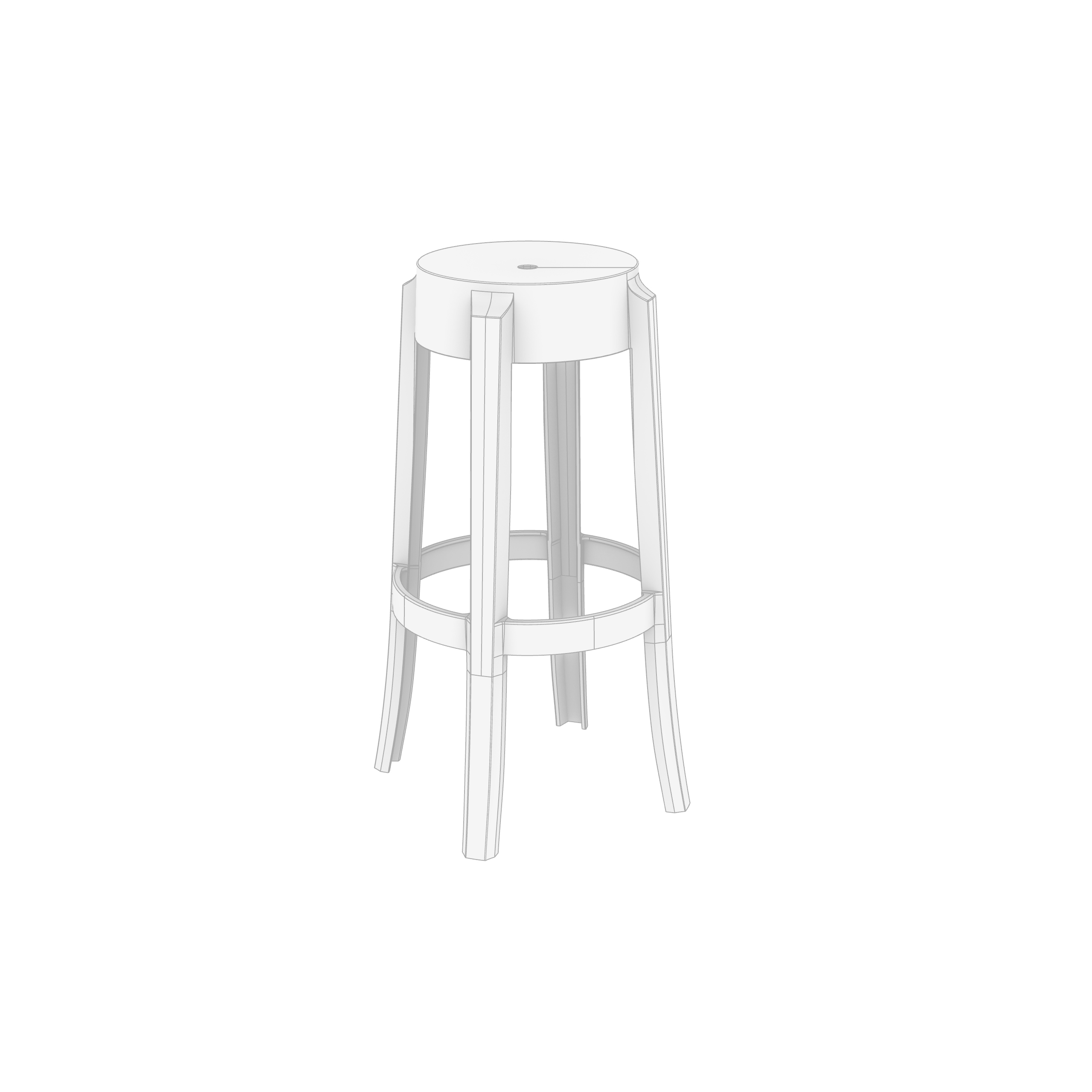 Kartell Charles Ghost 75 Stool is a high-quality model modeled in NURBS, divided by layer to handle different elements and materials of the model more efficiently.