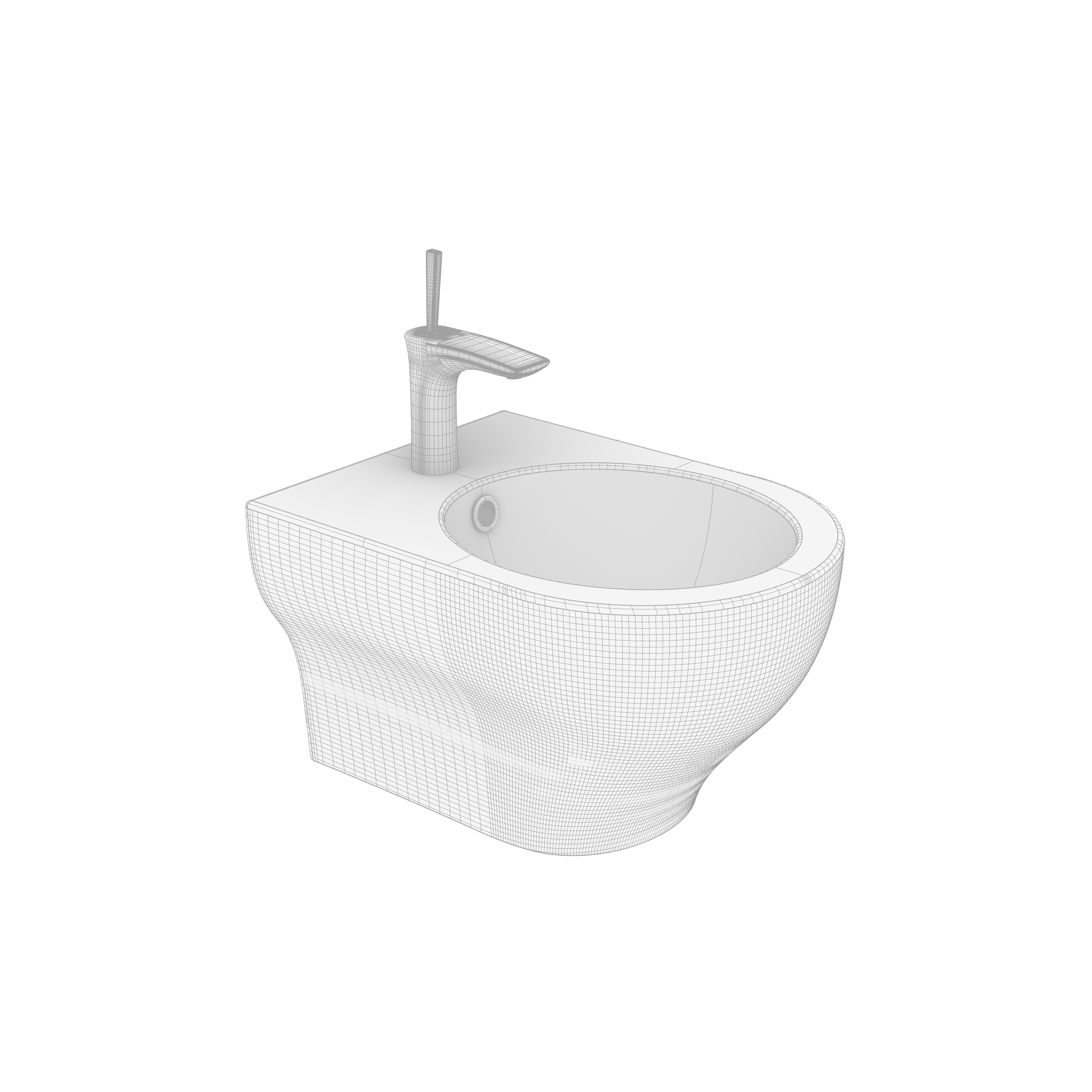 Olympia Ceramic Clear Wall Hung Bidet is a high-quality model modeled in NURBS, divided by layer to handle different elements and materials of the model more efficiently.