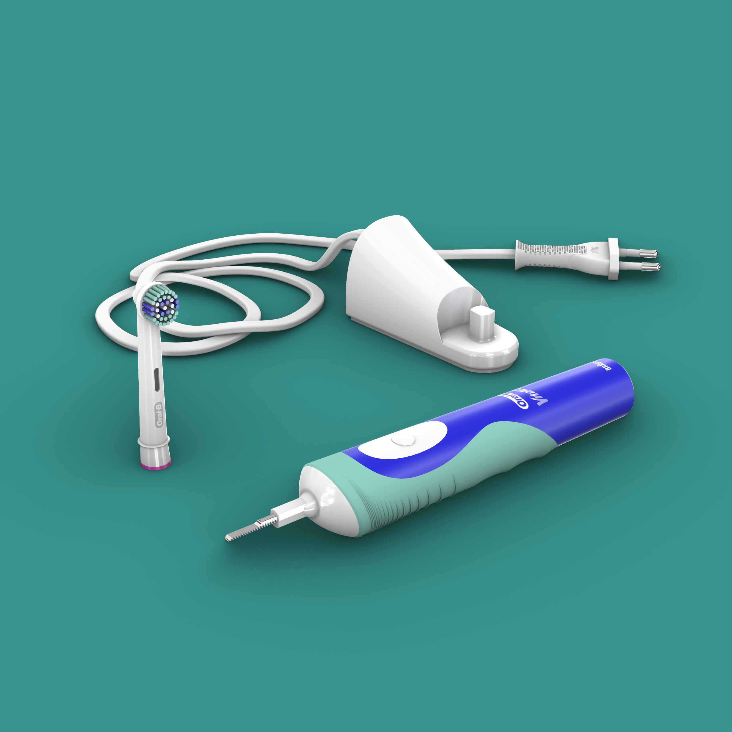 Braun Oral B Electric Toothbrush is a high-quality model modeled in NURBS, divided by layer to handle different elements and materials of the model more efficiently.
