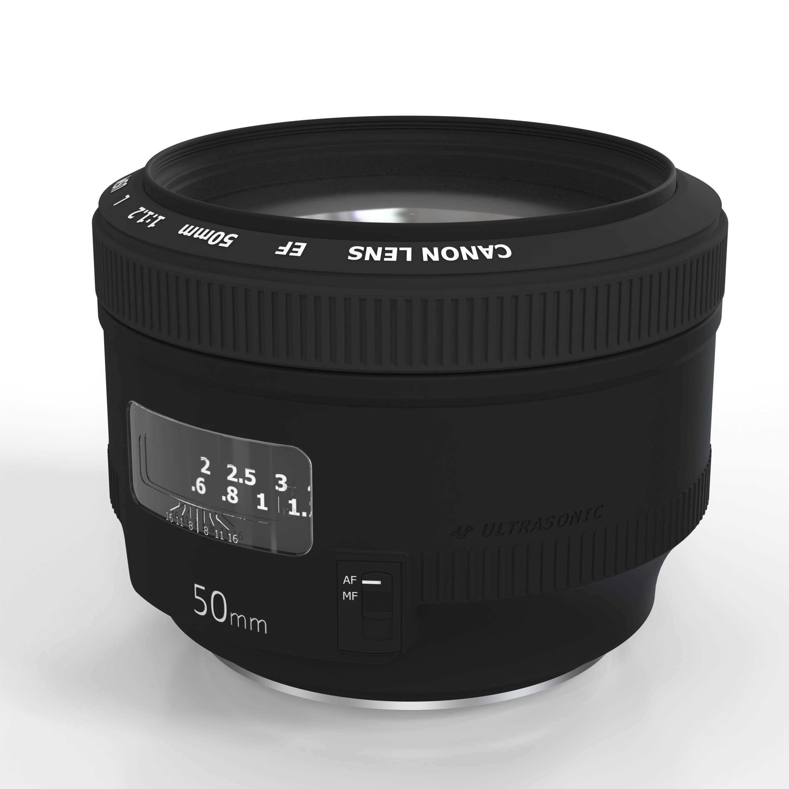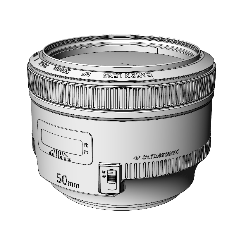 Canon Camera Lens Canon 50mmf1 is a high-quality model modeled in NURBS, divided by layer to handle different elements and materials of the model more efficiently.