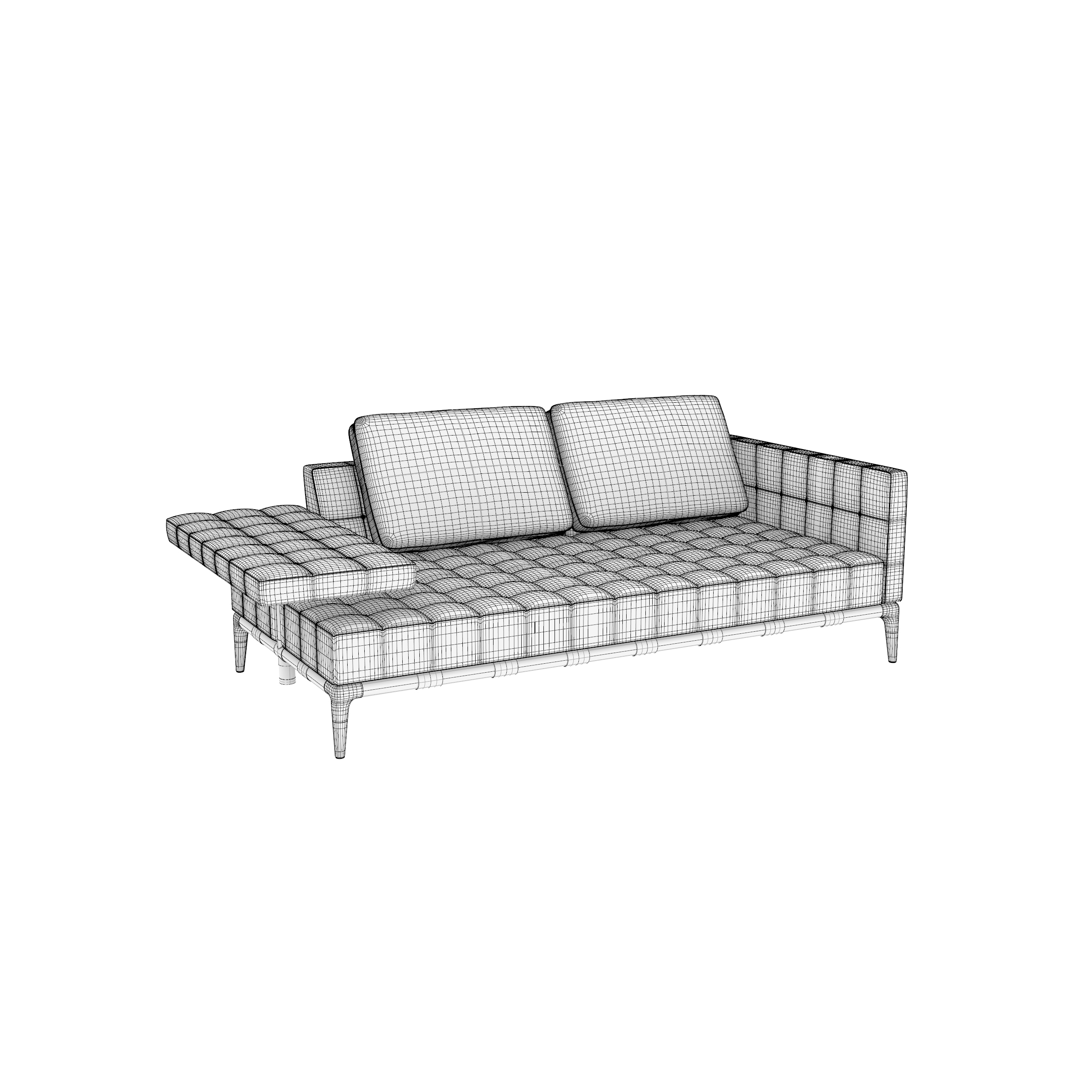 Cassina 241 Privé Sofa Mid Chaise Longue Double is a high-quality model modeled in NURBS, divided by layer to handle different elements and materials of the model more efficiently.
