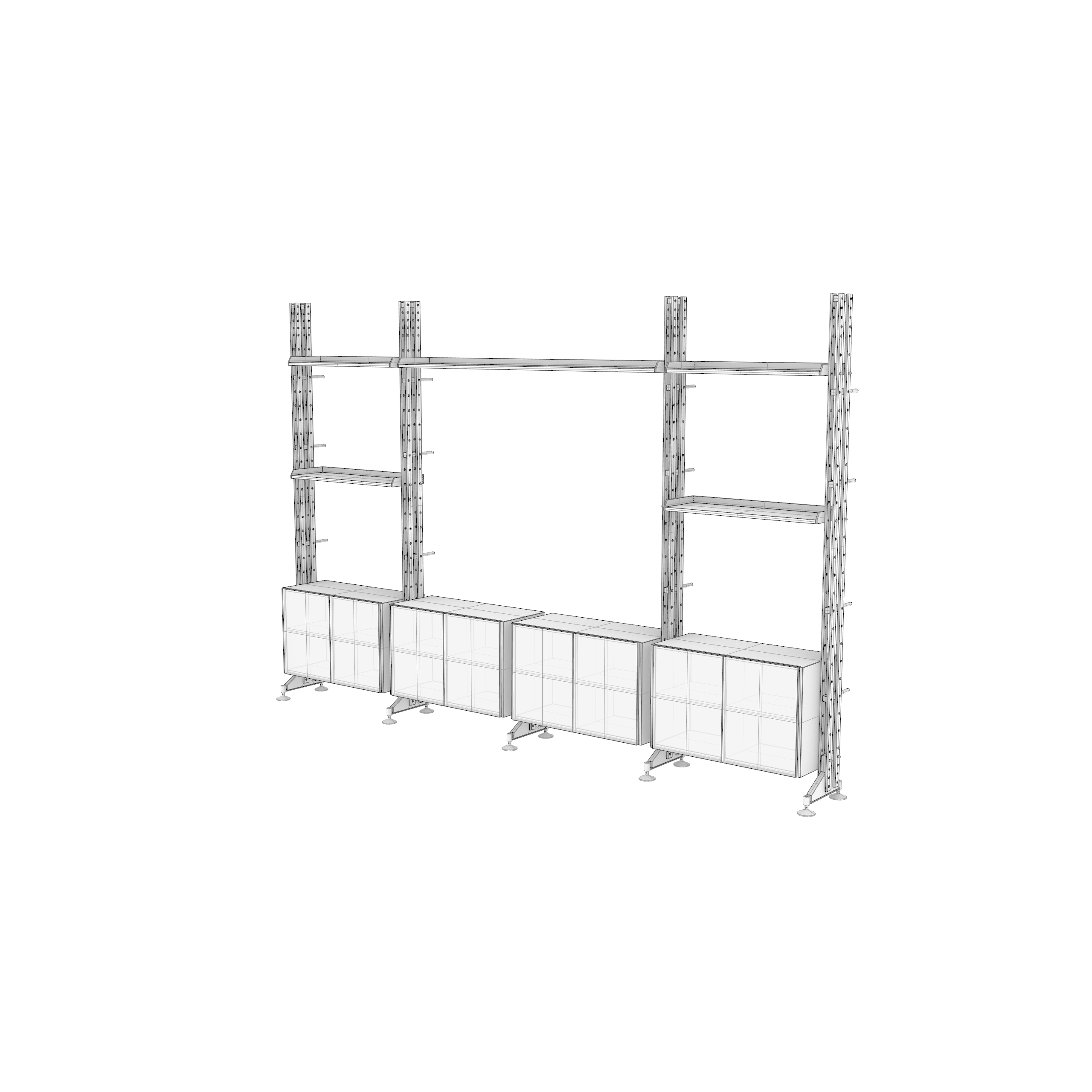 Crafted with meticulous attention to detail, the Infinito Wall features a modular and versatile design. It includes wall mounting and a stable floor support, providing endless possibilities for configurations to adapt to various spaces and needs.
