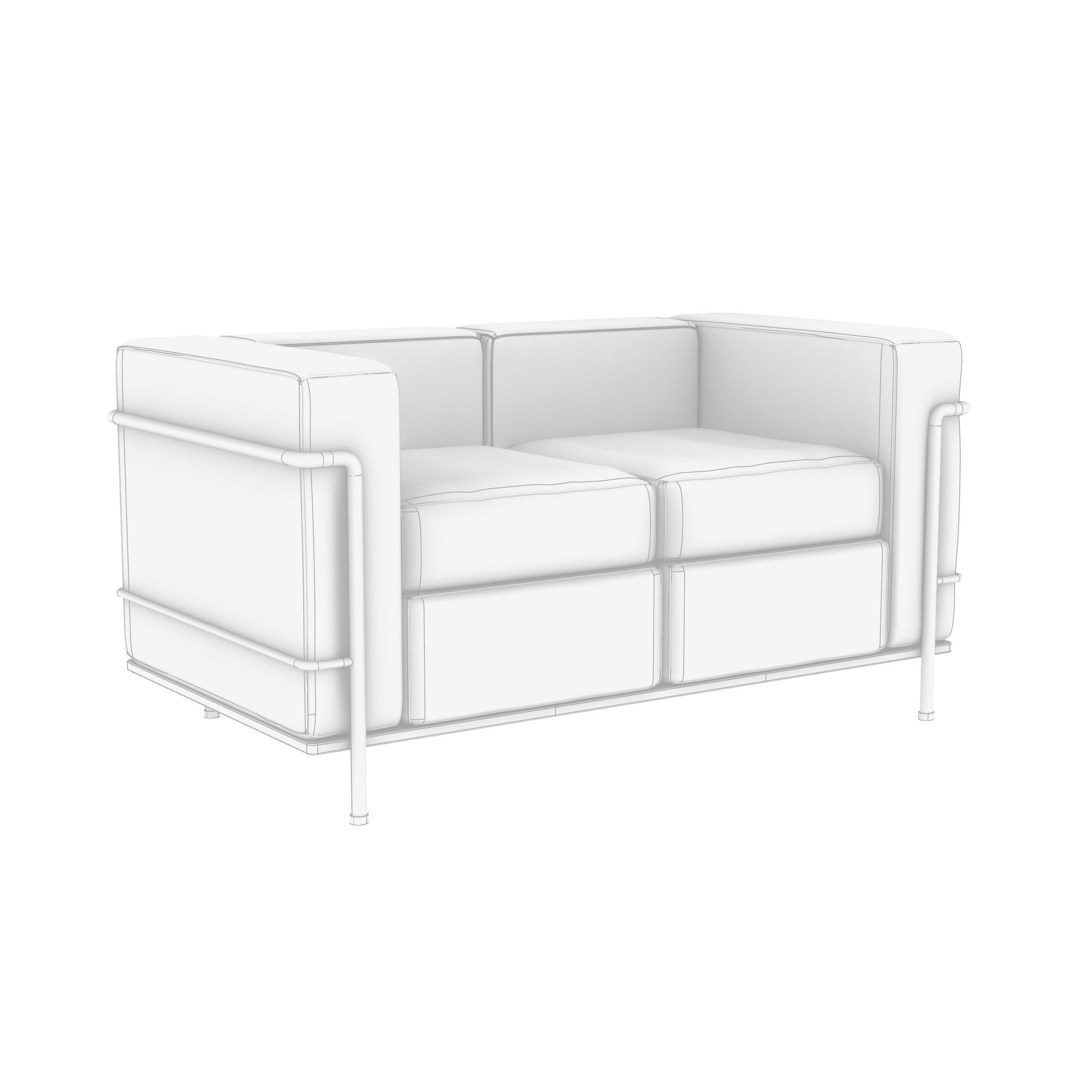 LC2 Sofa 2 Seats is a high-quality model modeled in NURBS, divided by layer to handle different elements and materials of the model more efficiently.