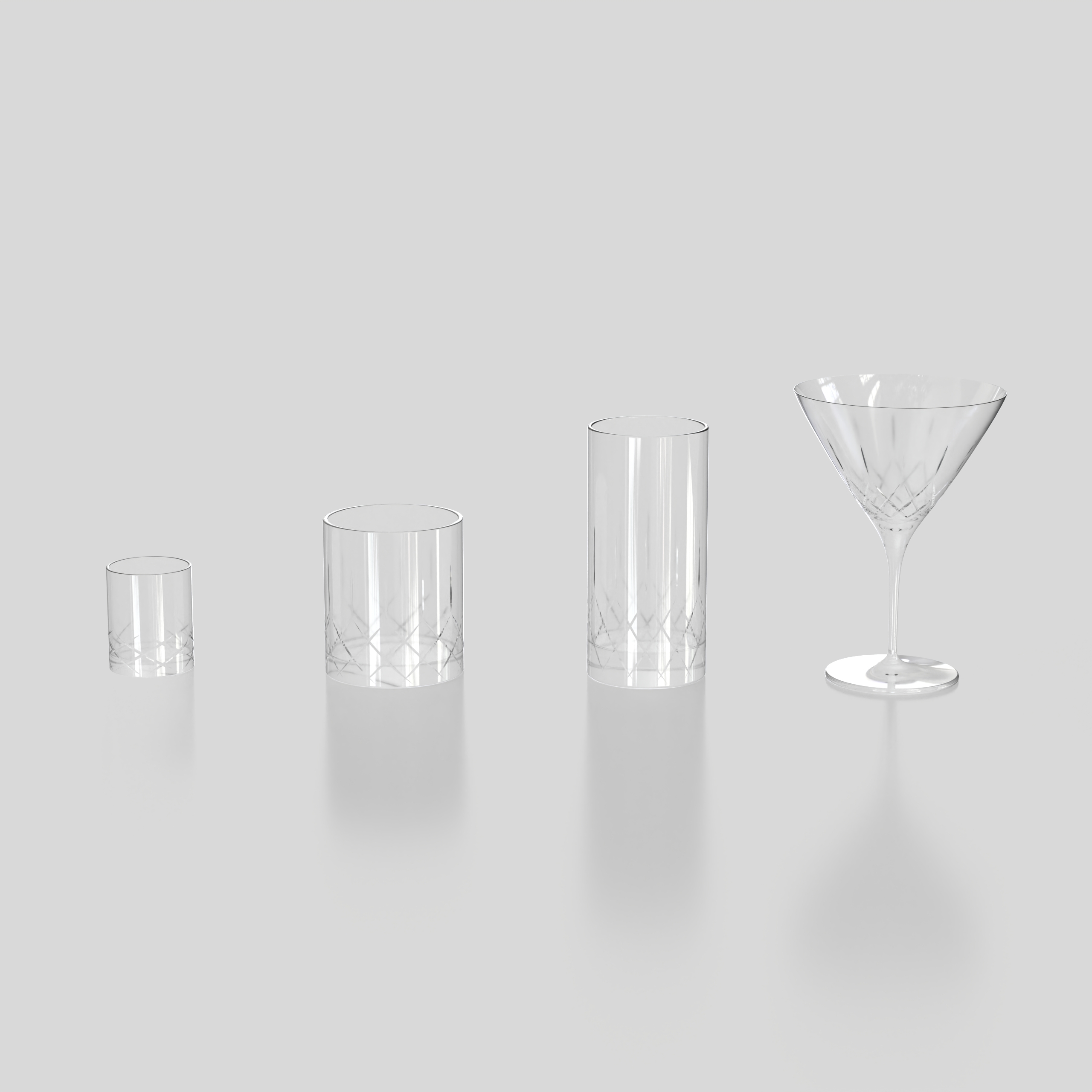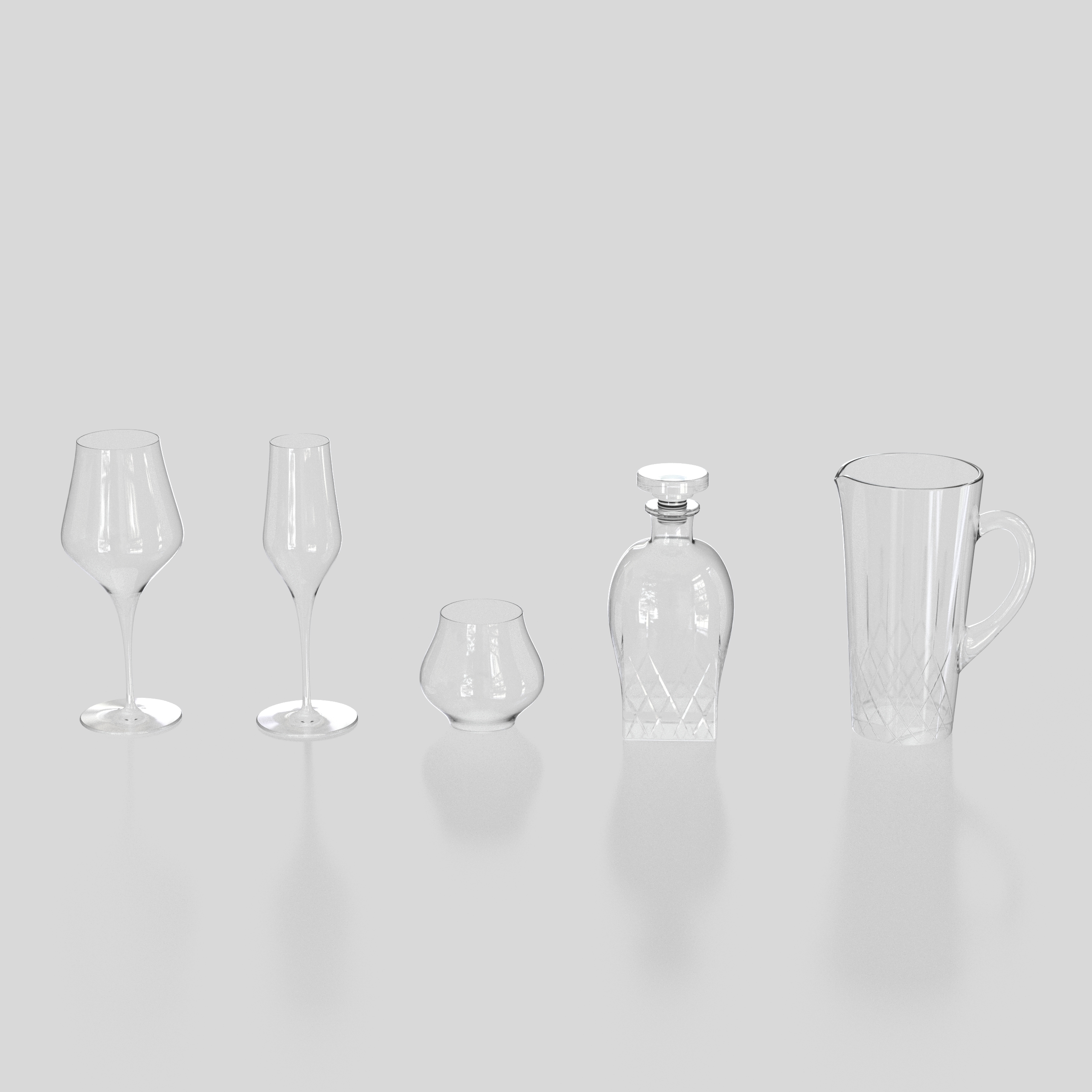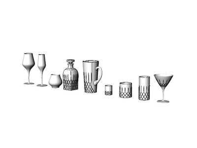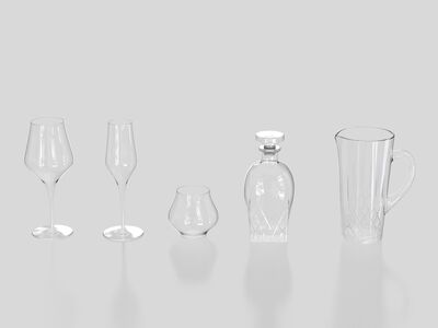 Glass Set is a high-quality model modeled in NURBS, divided by layer to handle different elements and materials of the model more efficiently.