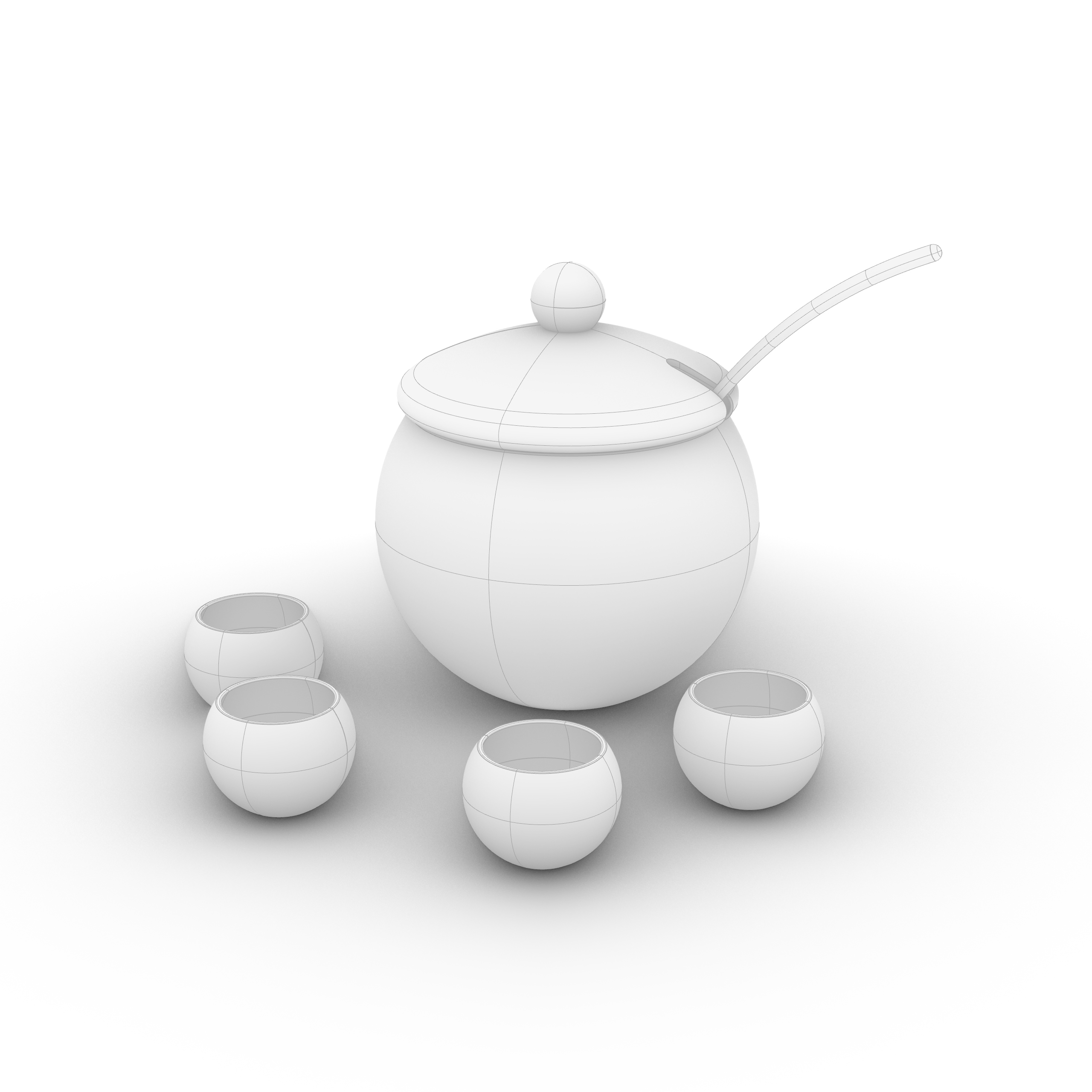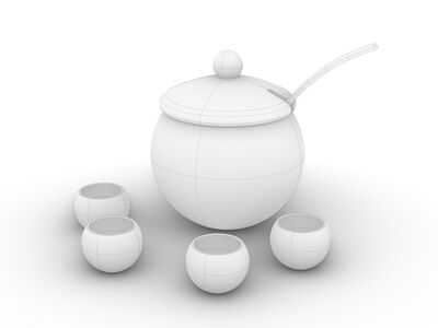 Soup Bowl Set 01 is a high-quality model modeled in NURBS, divided by layer to handle different elements and materials of the model more efficiently.