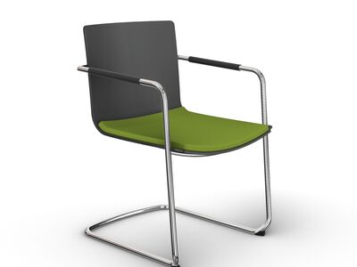 The cantilever chair consists of a slender, bright chromium-plated tubular steel frame connected to an elegant tapered outer rail. The space between the outer rail and the shell is not just simply a smart detail: the rail is also a handle and at the same time allows flexible adjustment of the back section. The single-section seat shell is invisibly attached to the seamless frame structure and combined with the suspended frame, it offers comfort par excellence.